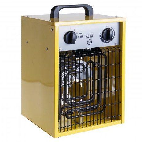 Elektrický ohřívač vzduchu s ventilátorem, vhodný pro použití ve skladech, dílnách, obchodech vytápění párty-stanů, skleníků… . Topný článek je vyroben z nerezové oceli, je z výroby povrchově upraven olejovou vrstvou – při prvním spuštění výrobku může být patrný zápach a kouř, což je zcela normální, po pár minutách provozu se ochranný olej vypálí a zápach i kouř se ztratí. Ohřívač je z bezpečnostních důvodů osazen bezpečnostním termostatem proti přehřátí, který v případě překročení kritické úrovně teploty odpojí topný článek. Model HIF-3301, Napětí 230V ~ 50Hz, Výkon 3300W, Proudové zatížení 14.5A, Nastavení výkonu43130650/3300W, Teplotní rozsah 5-40°C, Krytí IP24, Rozměry 27 x 25.5 x 40cm, Hmotnost 4.8 kg.