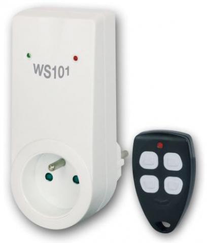 Vlastnosti WS101: Rádiový přenos na frekvenci 433,92 MHz a unikátní systém SAMOUČENÍ KÓDŮ zaručuje kvalitní a bezporuchový provoz. WS101 umožňuje současně ovládat až čtyři zařízení jednou klíčenkou a naopak jedno připojené zařízení do přijímače (zásuvky) lze ovládat až 8-mi různými vysílači (klíčenkami).