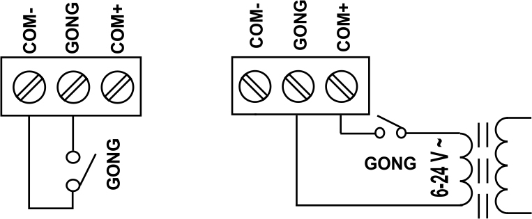 Elektronický drátový zvonek - jednohlasý gong s nastavitelnou hlasitostí. Stisknutím tlačítka se aktivuje zvuk podobný gongu, jehož intenzitu je možné regulovat. Další parametry: max. průřez instalačních vodičů 1,5 mm2, pracovní teplota 0°C až +50°C.