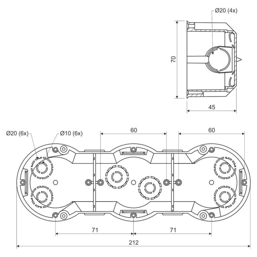 Elektroinstalační krabice KOPOS KP 64/3 213x70x45mm šedá