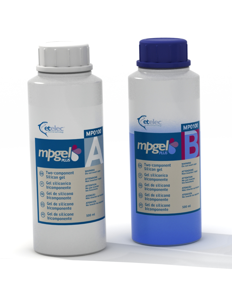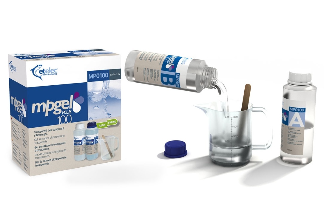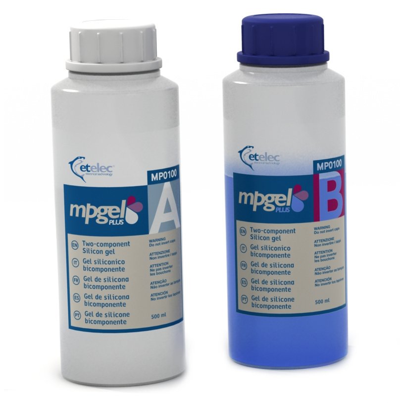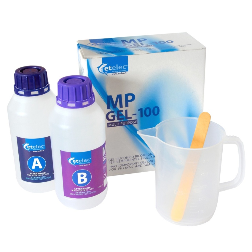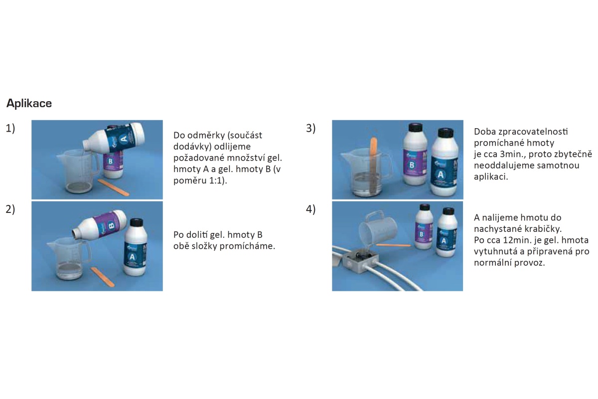 Dvousložkový gel pro kabelové spojky, 2x láhev, obsah 1 litr, míchací nádobka a míchátko je součástí balení.