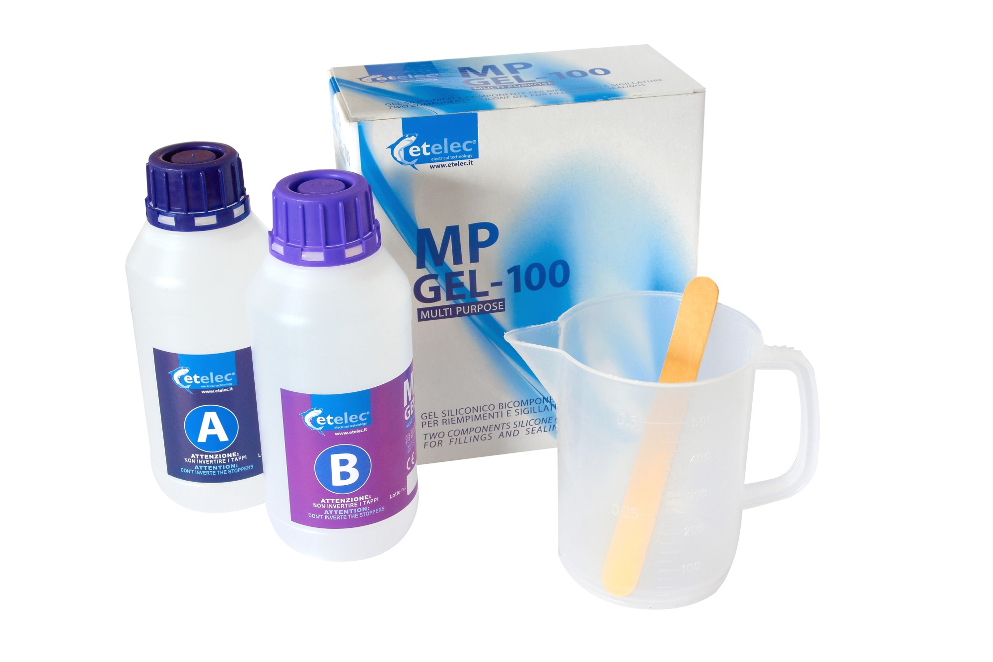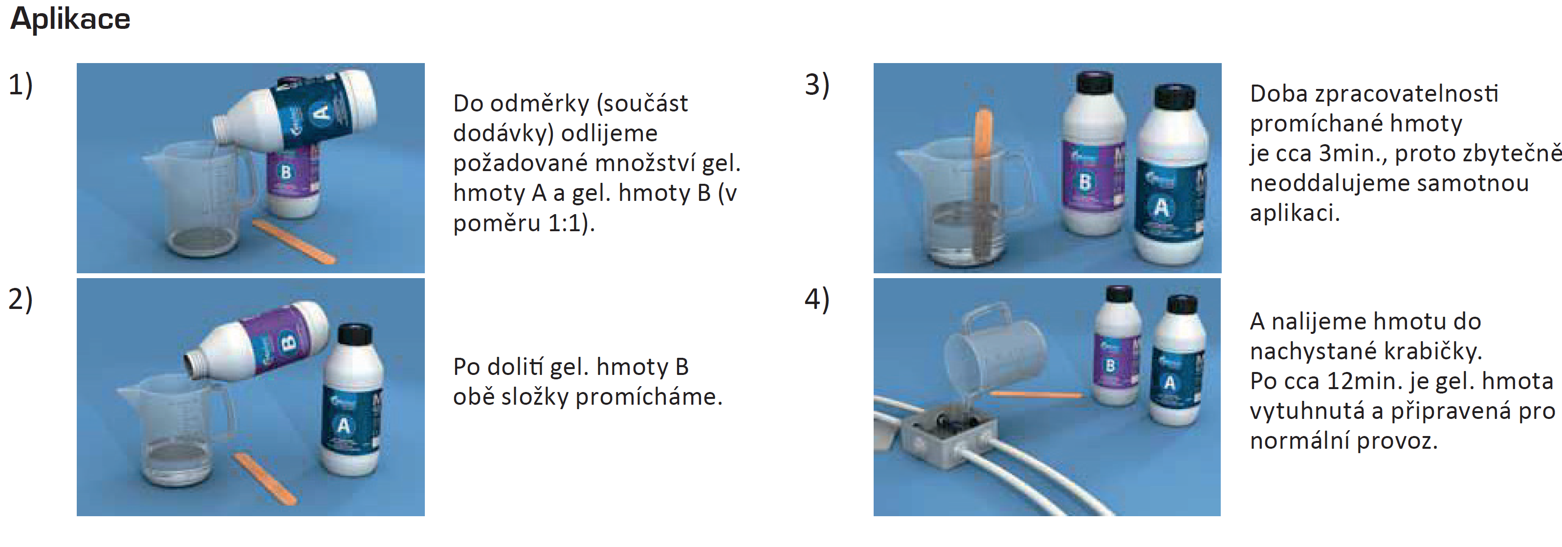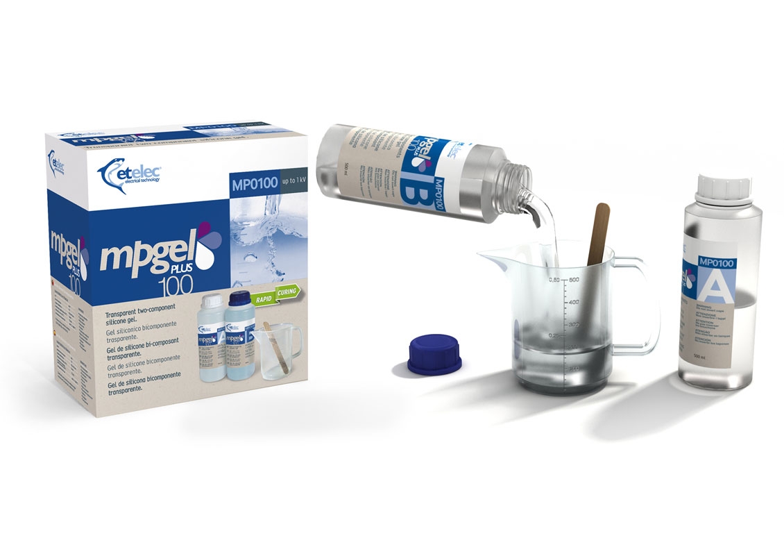 Dvousložkový gel pro kabelové spojky, 2x láhev, obsah 1 litr, míchací nádobka a míchátko je součástí balení.
