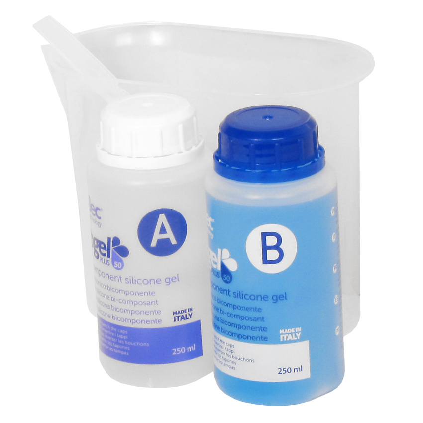- Složka gelu "A" i složka gelu "B" je průhledná hmota s nízkou viskozitou ("dobře teče") a po smíchání a vytuhnutí zůstává po celou dobu životnosti spoje rosolovitá. Při samotném vylévání krabičky nebo jiného média krásně zatéká do všech zákoutí. Spoj lze po vytuhnutí jednoduše rozebrat.