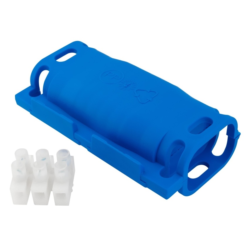 Gelová kabelová spojka SHARK SH0325 pro vodiče (pro 3žilové kabely): 3x2,5mm2 - pro spojení přímé. Průřezy odpovídají při použití slaněných vodičů. Krytí IPX8 (dle EN 50 393). Se svorkovnicí, 2 stahovací pásky, EN 50393.