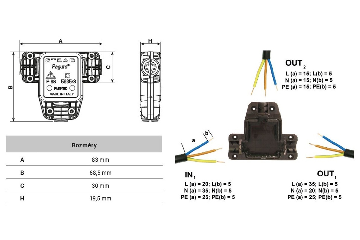 ELEMAN SPOJKA PAGURO 5695/3 GELOVÁ ODBOČNÁ IP68, 3X KABEL 3X(1,5-2,5MM2), 1005624