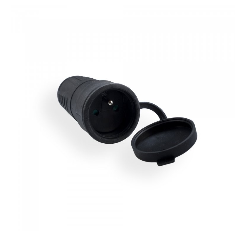 ELGOTECH ZÁSUVKA JEDNONÁSOBNÁ GUMOVÁ 2P+Z IP44 ČERNÁ, 20500104