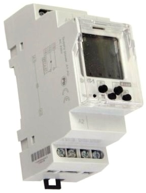 Spínací hodiny digitální slouží k ovládání různých spotřebičů v závislosti na reálném čase, v denním, týdenním. „Prázdninový program“ , jednokanálové provedení, 2-MODUL, upevnění na DIN lištu, třmenové svorky.