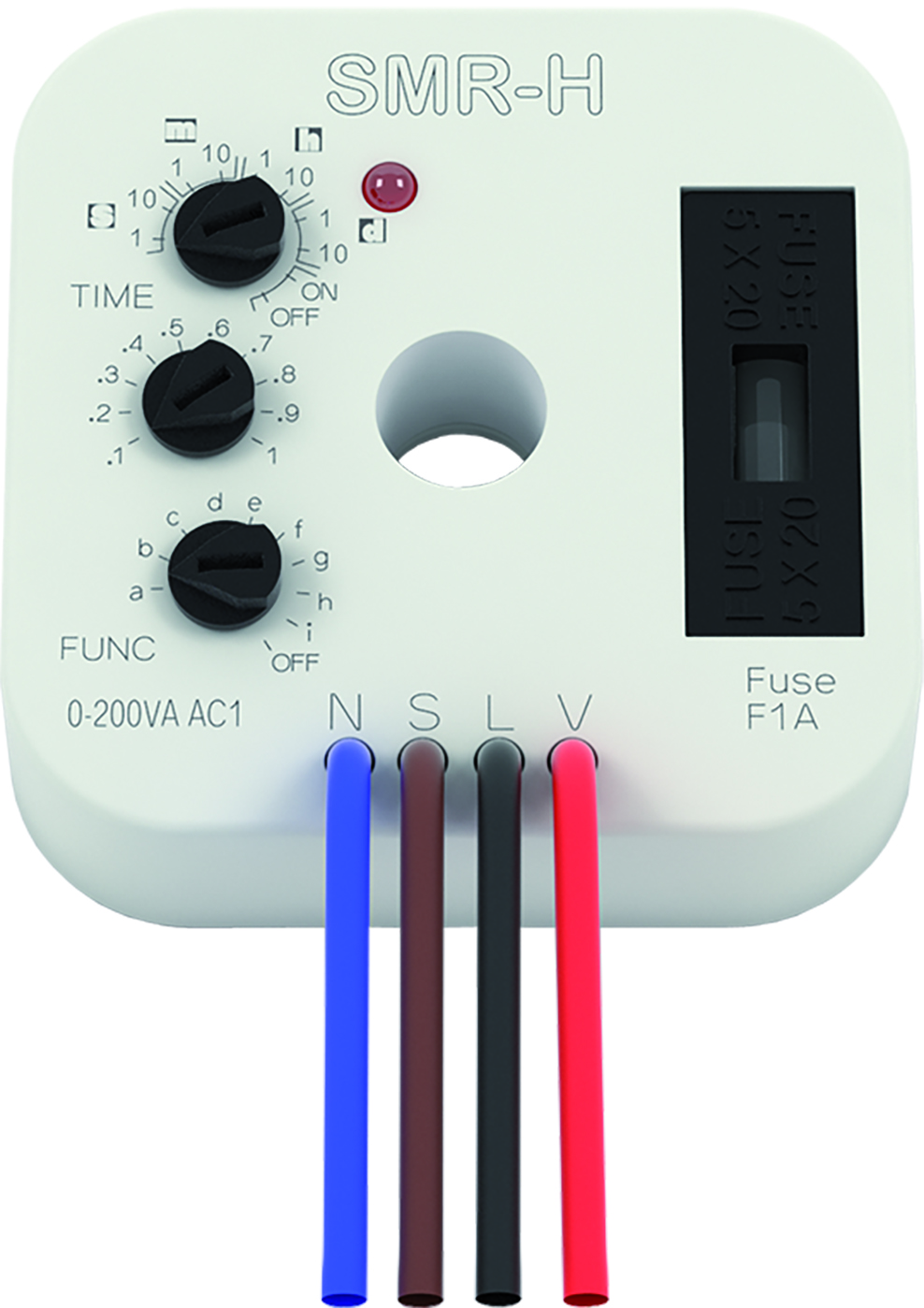 Multifunkční relé určené pro montáž do instalační krabice, pod tlačítko nebo vypínač do stávající elektroinstalace. Výhodné a rychlé řešení standardního vypínače za časově ovládaný a nebo tlačítkově ovládané paměťové relé. 4-vodičové připojení. Nelze použít pro zářivky a úsporné žárovky (zátěže kapacitního charakteru). 4-vodičové připojení, výstupní výkon: 0 - 200 VA.