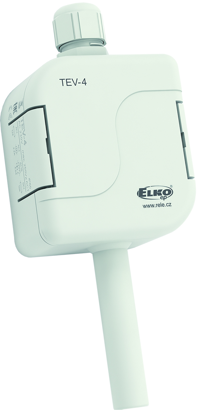 Jednoduchý termostat TEV-4 pro hlídání a regulaci teploty ve venkovních prostorech a náročných prostředích (vlhké a znečištěné, průmyslové provozy...). Venkovní provedení je krabička pro montáž na zeď, odnímatelné víčko bez šroubů. Vestavěný teplotní senzor je pevnou součástí výrobku. Dvě propojkou nastavitelné funkce: topení a chlazení. Tři nastavitelné rozsahy teploty a 3 nastavitelné hodnoty hystereze.