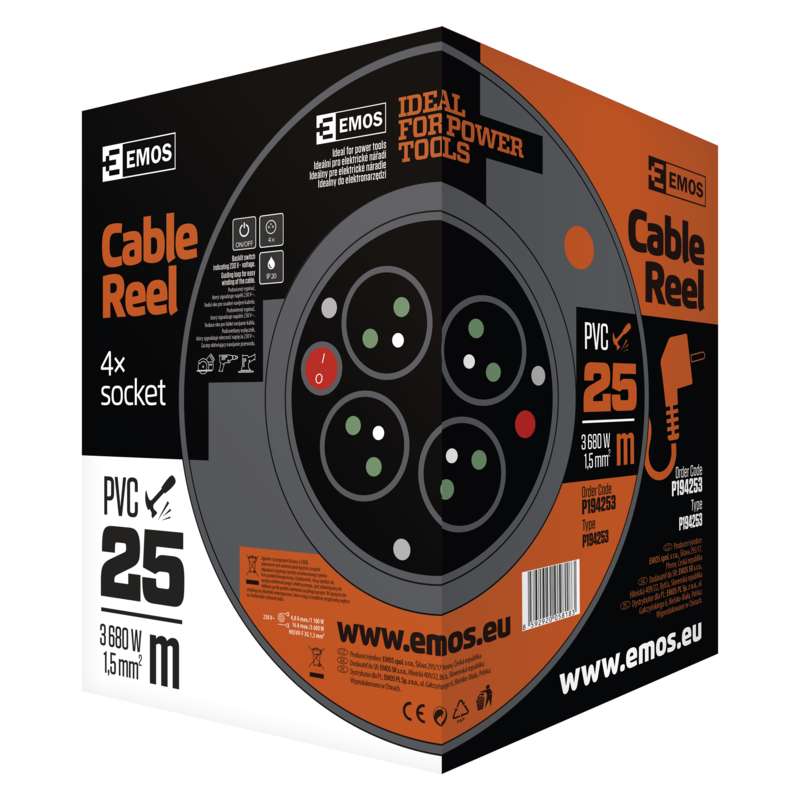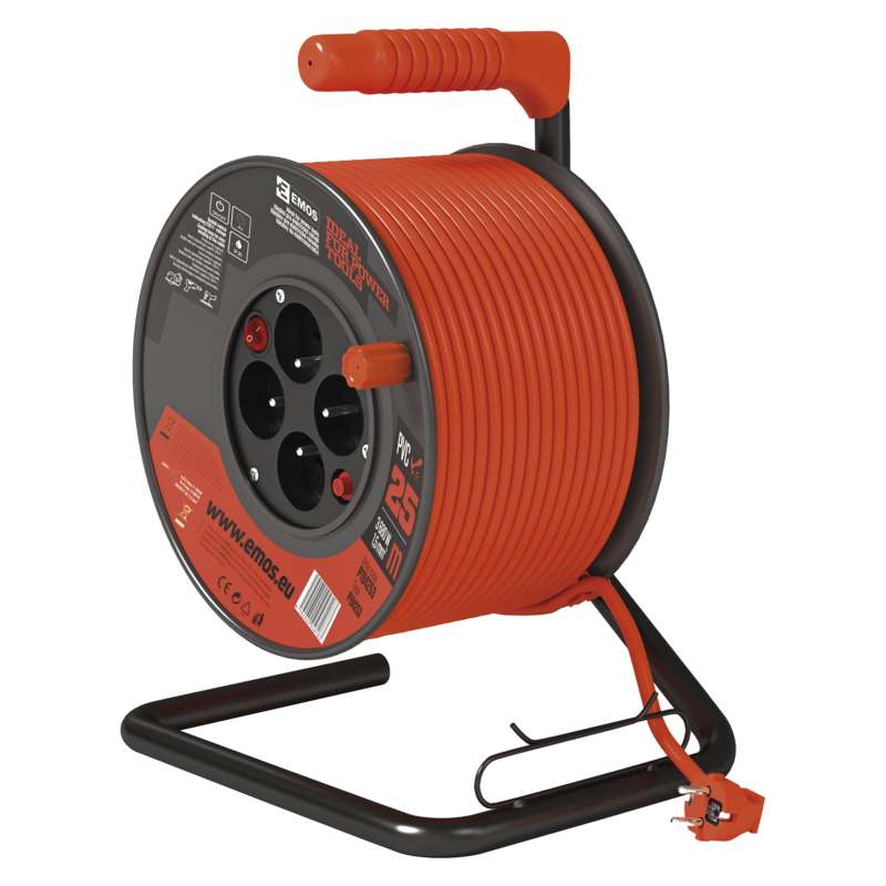 EMOS Prodlužovací kabel na bubnu 25 m / 4 zás. / s vypínačem / červený / PVC / 230V / 1,5 mm2