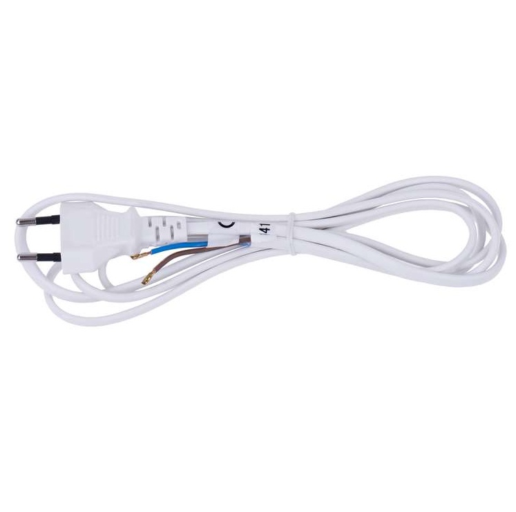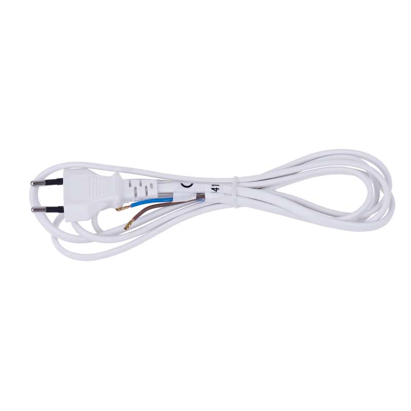 Flexo šňůra s přímou vidlicí v bílé barvě. Flexo šňůra má dvoužilové pohyblivé přívody s neoddělitelnou vidlicí s PVC izolací. Délka flexo šňůry je 2 m.