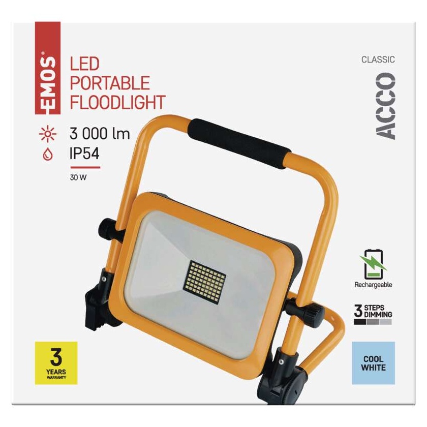 EMOS LED REFLEKTOR AKU 30W 3000LM ACCO IP54 CW ZS2832