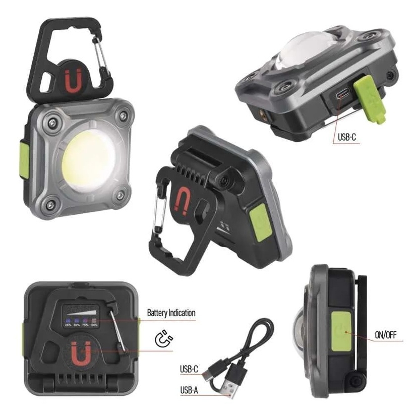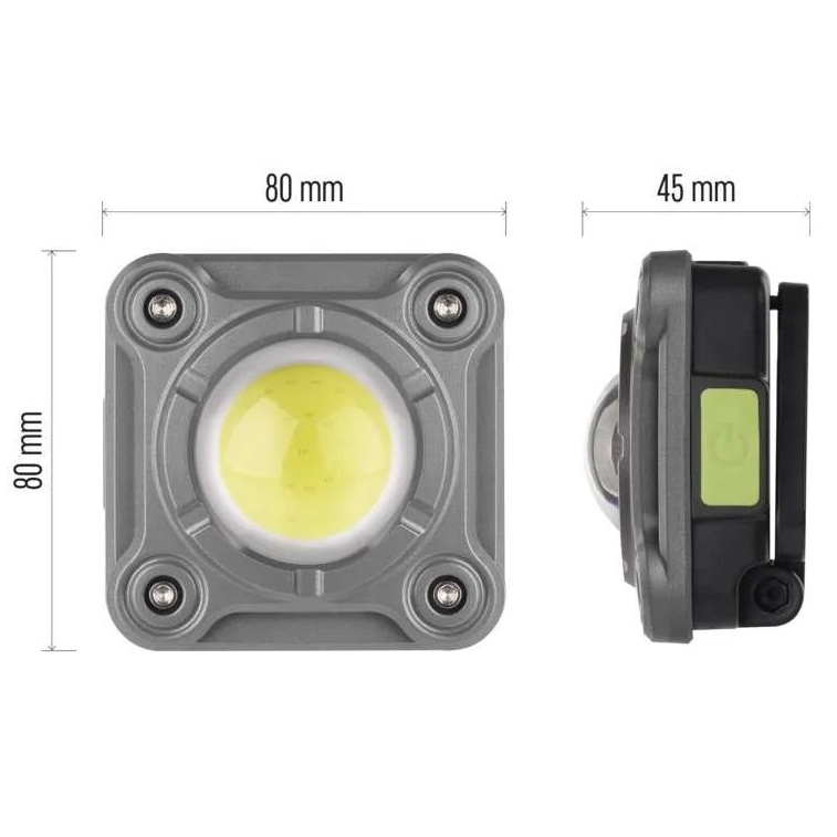 - Oproti běžným pracovním svítilnám má mnohem vyšší světelný tok (až 1 200 lm), dosvit až 60 metrů a také 3 režimy svícení (COB LED - 1 200/400 lm, blikání).