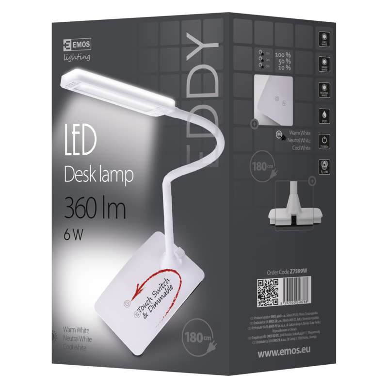 EMOS LED STOLNÍ LAMPA EDDY 6W 360LM, BÍLÁ