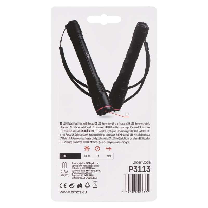 EMOS LED svítilna kovová, 120 lm, 2× AAA, FOKUS