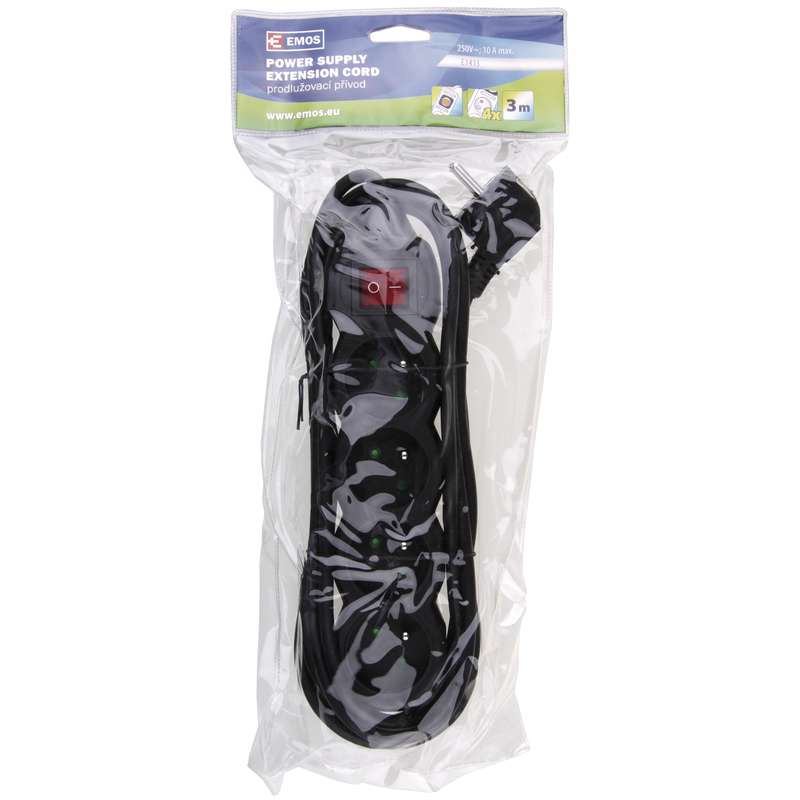 EMOS PŘÍVOD PRODLUŽ. 4Z 3M S VYP. CERNA -PC1413-