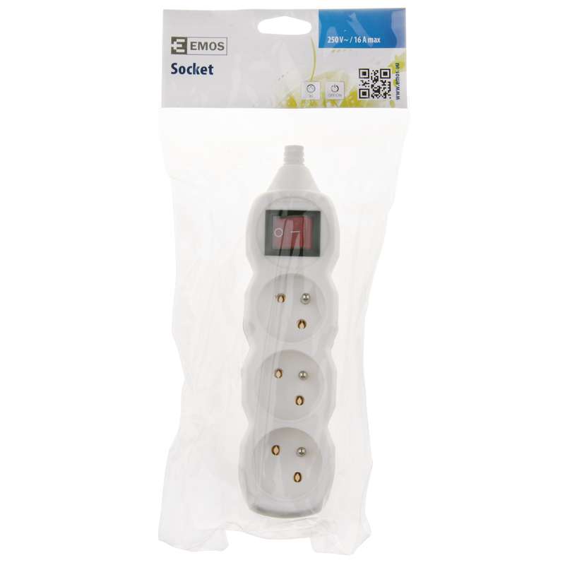 EMOS ZÁSUVKA 3-NÁS. SAMOSTATNÁ S VYPÍNAČEM, BÍLÁ P1300N