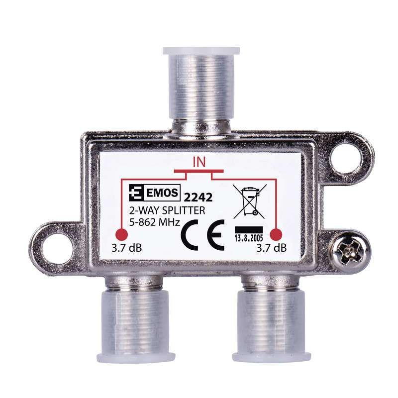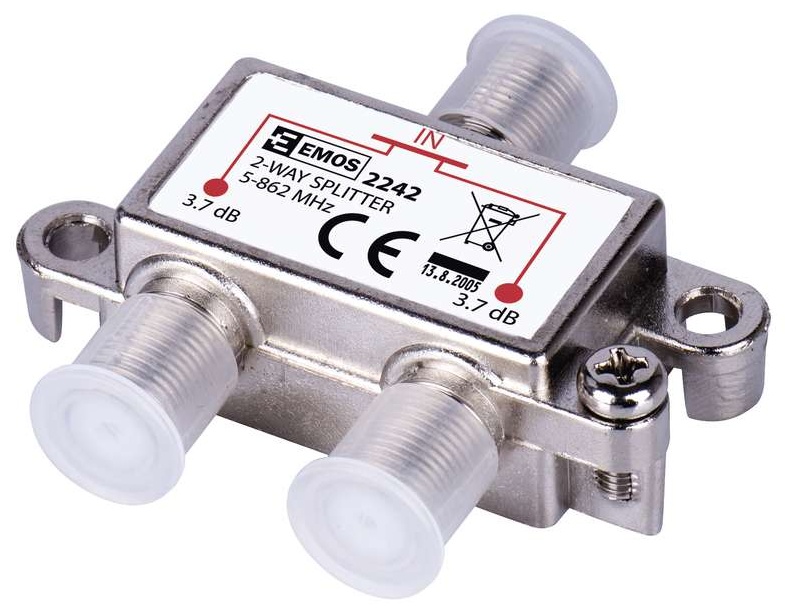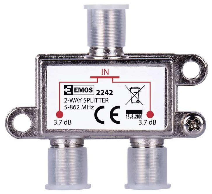 Dvojnásobný feritový rozbočovač EU 2242. Rozbočovač se využije v případech kdy např. chcete zapojit dva televizory do jedné účastnické zásuvky.