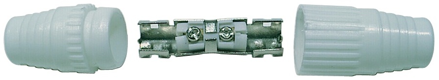 IEC spojka A223 určená k nadstavení koaxiálního kabelu. Spojka má bílou barvu.