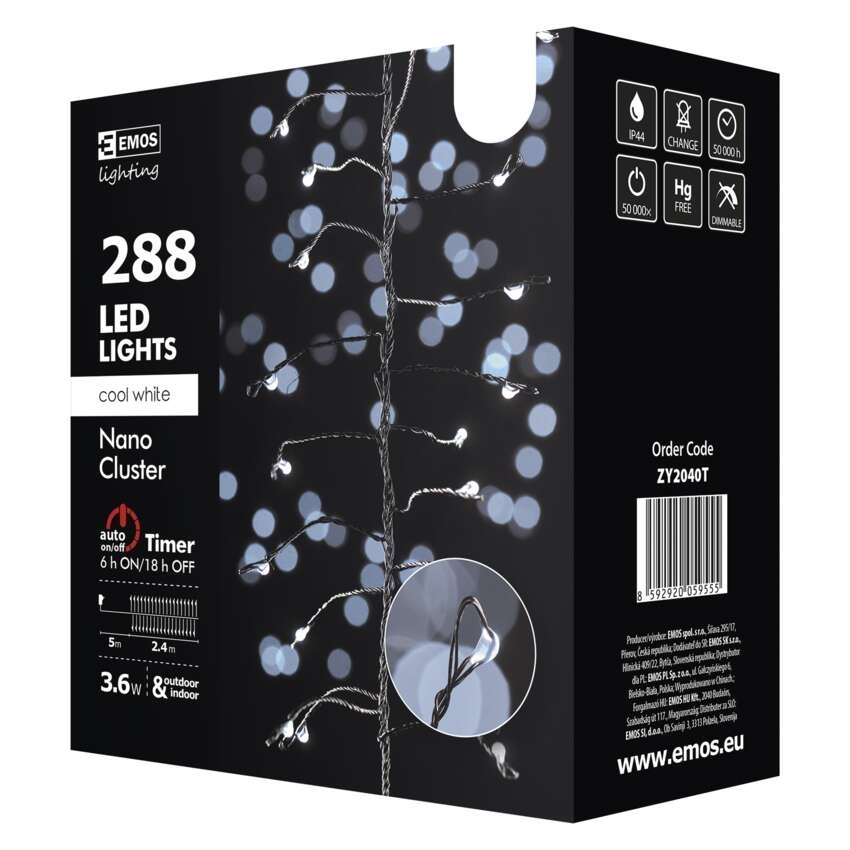 EMOS VÁNOČNÍ OSVĚTLENÍ 288LED ŘETĚZ NANO JEŽEK 2,4M, STUDENÁ BÍLÁ, ČASOVAČ ZY2040T