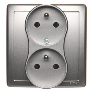 EPRO ZÁSUVKA 2X S OCHR. KOLÍKY, CLONKY, STŘÍBRO