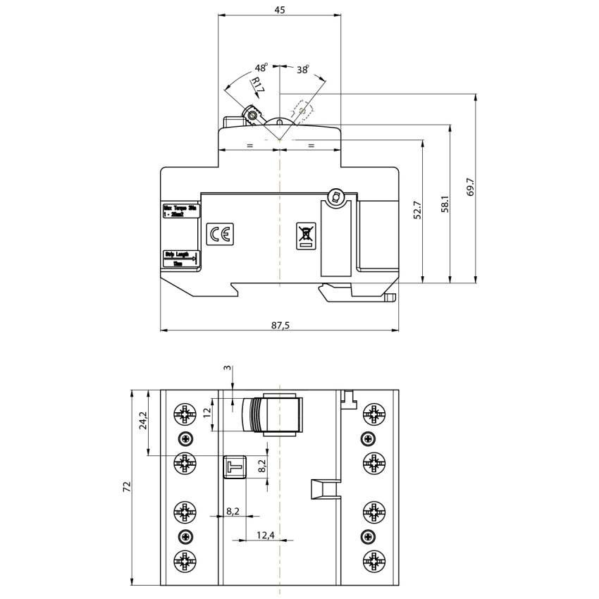 Proudový chránič, efi-p4 a 25/0.03, typ proudu a, hlubka (mm) 68, stupeň krytí ip ip20, uchycení din lišta, počet pólů 3+n, jmenovitý proud (a) 25, un (v) 415, jmenovitý podmíněný pracovní proud (ka) 10, jmenovitá frekvence (hz) 50/60, jmenovitý chybový pracovní proud idn (ma) 0.03, normy iec/en 61008, vstupní svorky (mm2) 1-25, vypínací čas okamžitý, typ a, number of poles 4 , rated voltage 415 v, rated current 25 a, rated fault current 0,03 ma, rated insulation voltage ui v, rated impulse withstand voltage uimp kv, mounting method din rail , leakage current type a , selective protection false , short-time delayed tripping false , short-circuit breaking capacity (icw) 10 ka, surge current capacity 0,4 ka, frequency , additional equipment possible true , with interlocking device , degree of protection (ip) ip20 , width in number of modular spacings 4 , built-in depth 68 mm, ambient temperature during operating °c, pollution degree , connectable conductor cross section multi-wired 1-25 mm?, connectable conductor cross section solid-core mm?