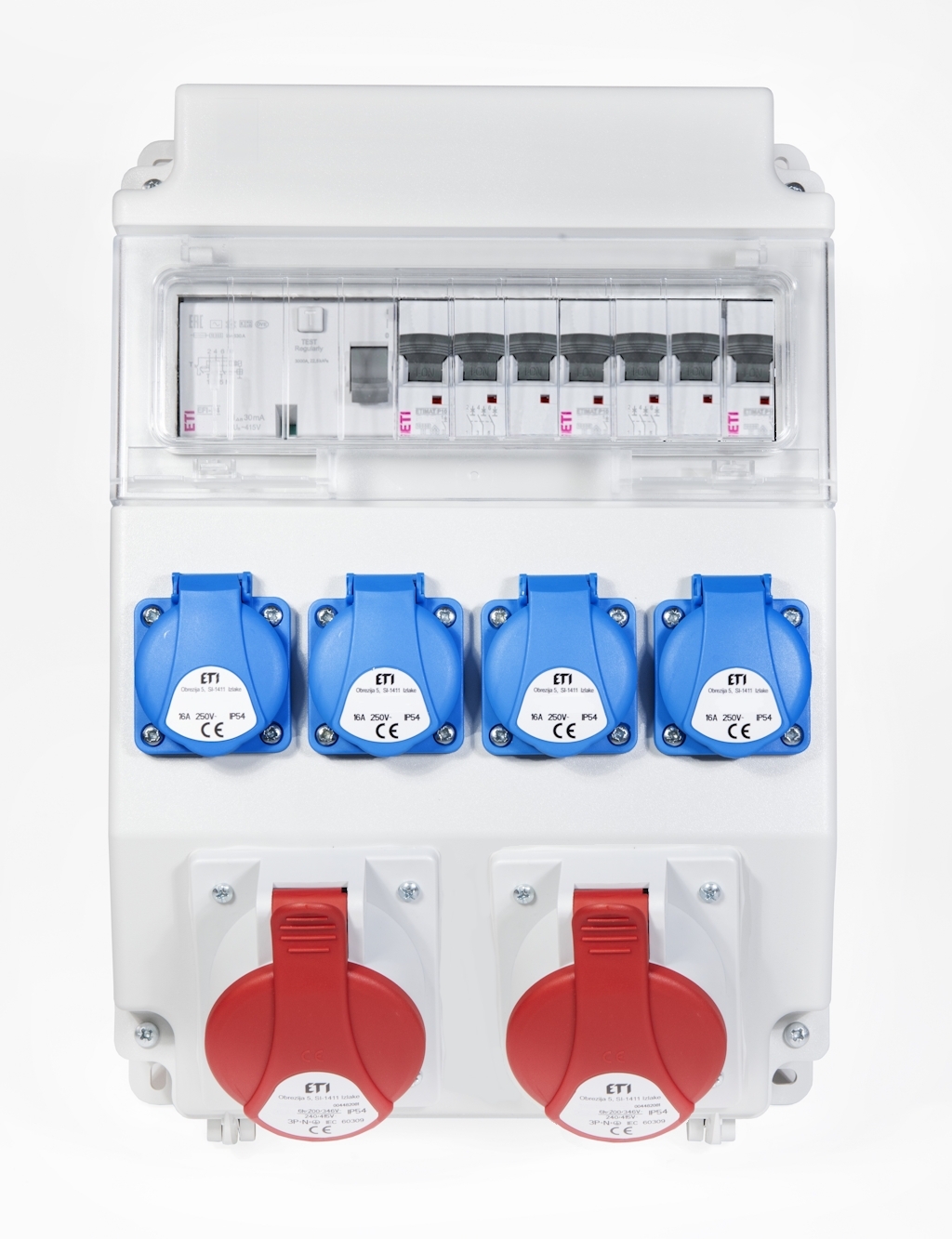ETI KOMBINACE ZÁS. EDS11 RCD 4-2/2-5 16/32 4X230V/16A, 1X400V/16A/5P, 1X400V/32A/5P S CHRÁNIČEM 001105415