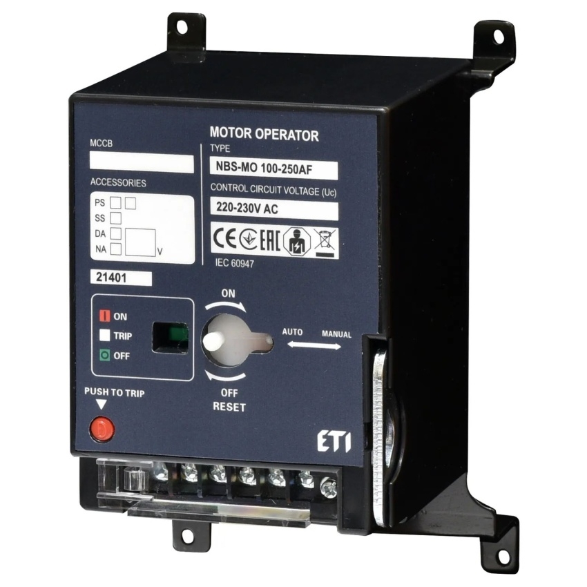 Motorový pohon ETI NBS-MO pro kompaktní jističe NBS, velikosti 100–250AF, napájení AC 220/230 V, kód 004673231.