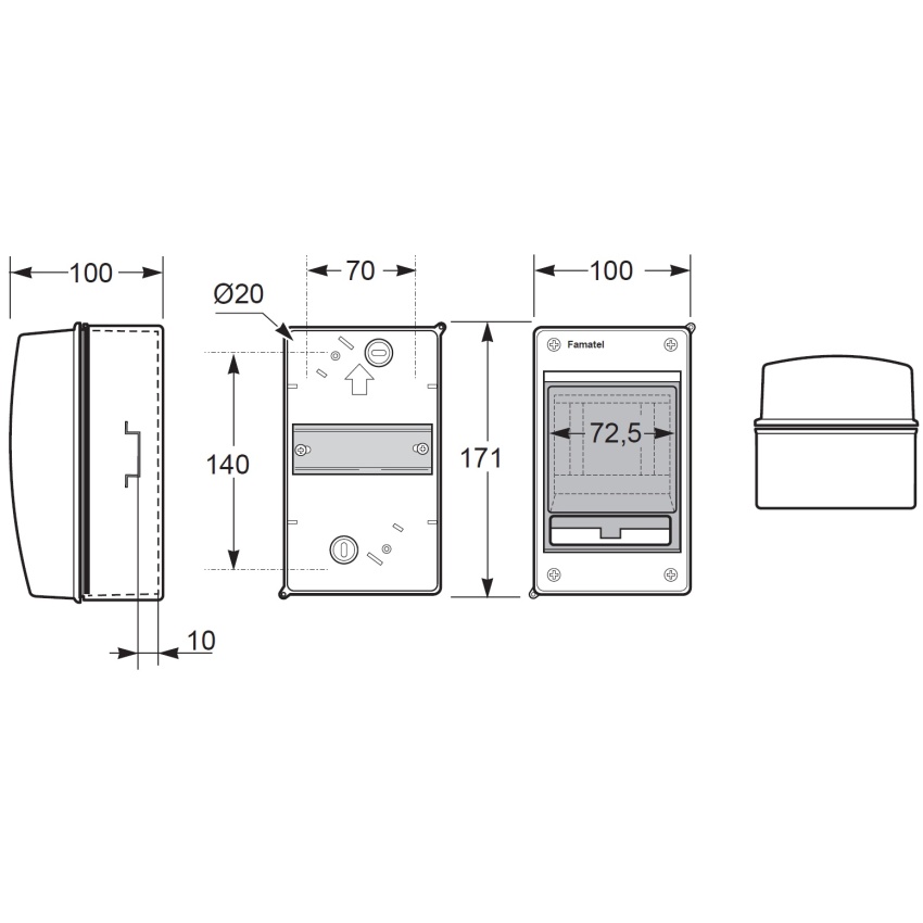 FAMATEL ROZVODNICE ACQUA 3902-T IP65, 2/4MOD., PRŮHLED. DVEŘE, 170X110X105MM
