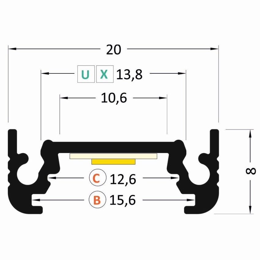 - Rozměry (š x v): 20 x 8 mm