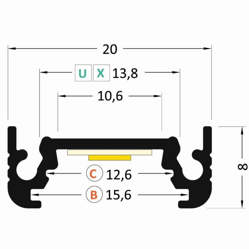 FK TECHNICS FKU11-2M 4731606 AL U PROFIL BEZ PLEXI 20X8X2000MM PŘISAZ.