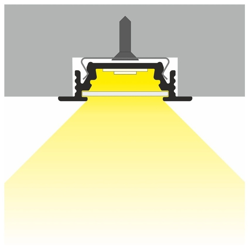 AL profil určený pro jeden LED pásek. Pásek se jednoduše nalepí do profilu a profil se osadí do vyfrézované drážky. Profil zároveň plní funkci chlazení (odvod ztrátového tepla) což je nutné u výkonných LED pásků.