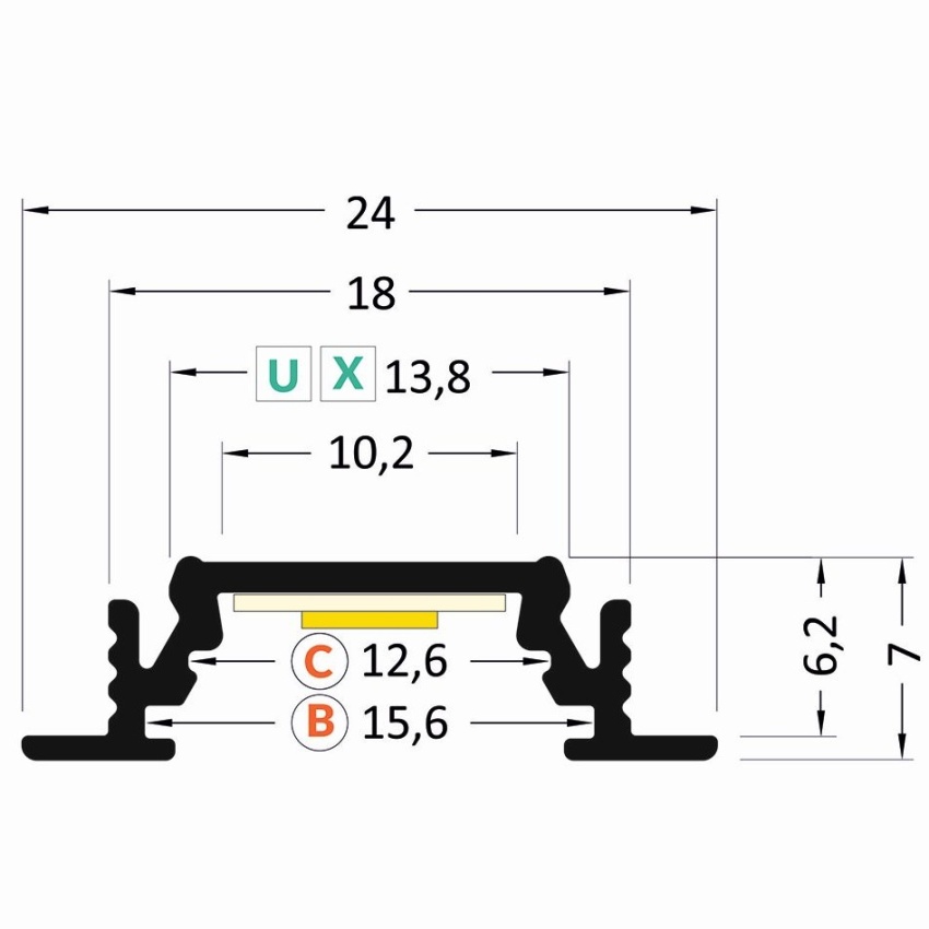 FK TECHNICS FKU12-2M 4731608 AL U PROFIL BEZ PLEXI 24X7MM VESTAVNÝ