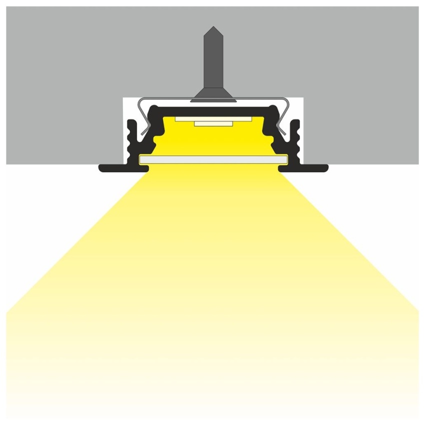 AL profil určený pro jeden LED pásek. Pásek se jednoduše nalepí do profilu a profil se osadí do vyfrézované drážky. Profil zároveň plní funkci chlazení (odvod ztrátového tepla) což je nutné u výkonných LED pásků.