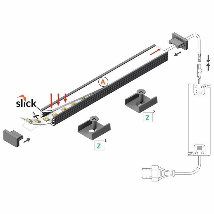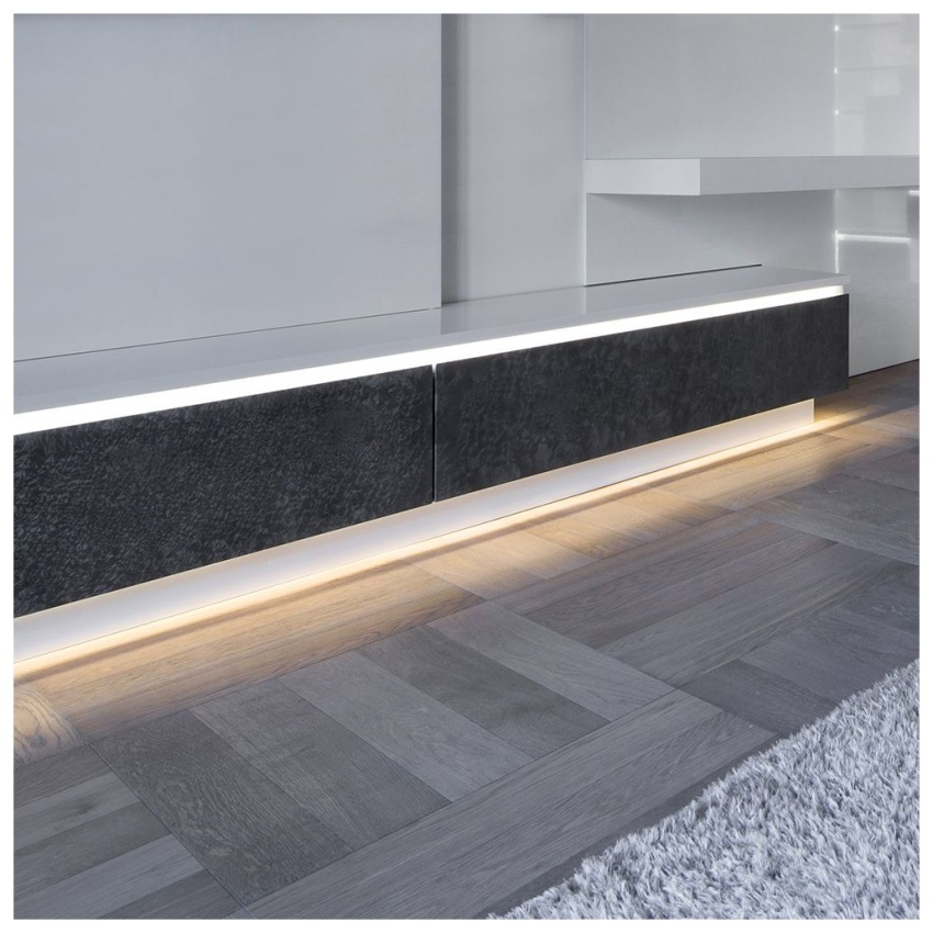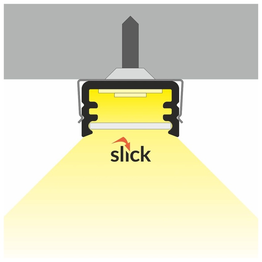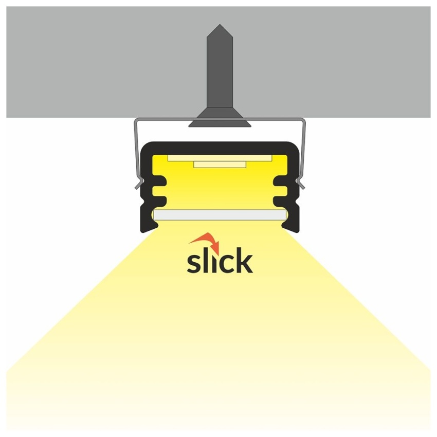 AL profil určený pro jeden LED pásek. Pásek se jednoduše nalepí do profilu, profil je určený pro přímou montáž přisazením nebo zavěšením. Profil zároveň plní funkci chlazení (odvod ztrátového tepla) což je nutné u výkonných LED pásků.