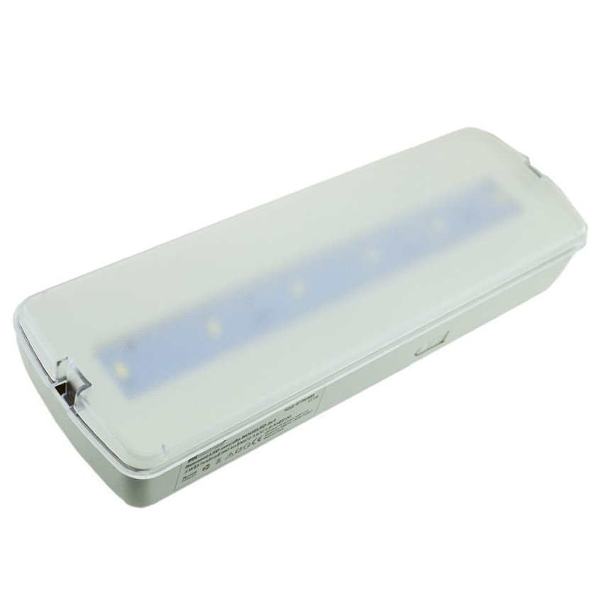 Nouzové LED svítidlo s vestavěným akumulátorem s možností přímé montáže na stěnu. Jako volitelné přílušenství je možné použít i např. rámeček pro montáž do sádrokartonu SDK, krabičku pro montáž do zdi (kombinace krabičky + rámečku do SDK), krabičku s IP65 pro dodatečné krytí, ale i všesměrový prostorový praporek pro orientaci v případě nouzových situací či evakuací. Součástí dodávky jsou všesměrové samolepicí piktogramy pro rychlou orientaci v případě evakuace osob či majetku. Technické parametry: Světelný tok: 260 lm Výkon:3 W Výdrž na akumulátor: 3 hod. Doba nabíjení: cca 10 h Indikace nabíjení: červená LED Indikace sítě: zelená LED Použité LED: 5730 Sanan Akumulátor: NiCd 3,6 V / 1,8 Ah Krytí: IP20 Materiál: ABS + PS difuzor Životnost: 50 000 hod. Rozměry: 238 x 80 x 40 mm