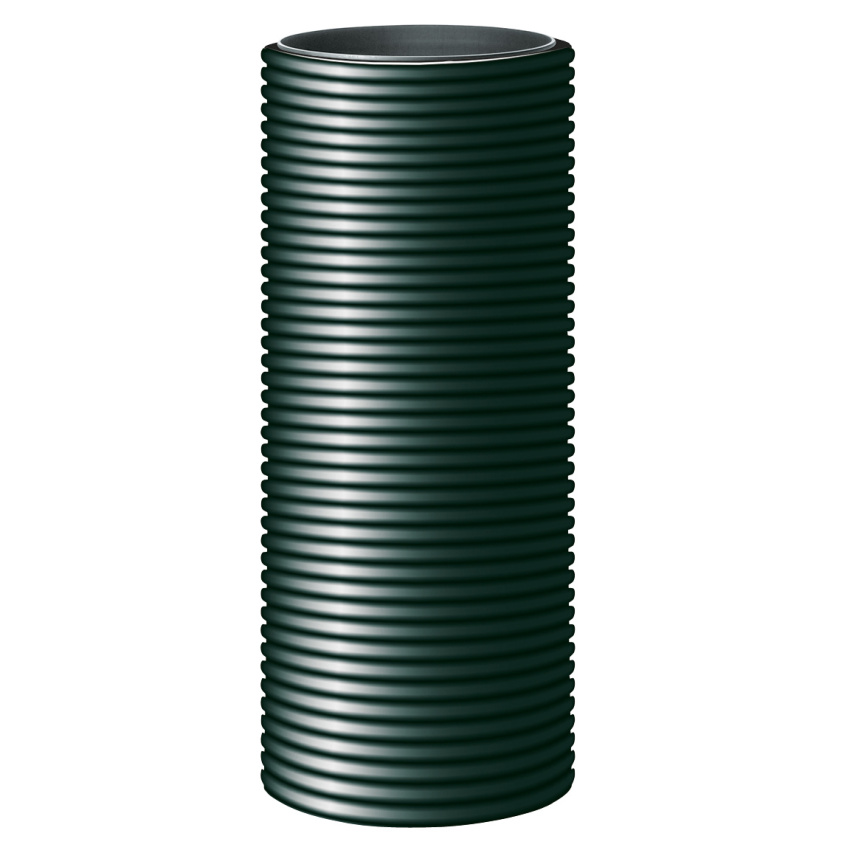 Pevná základová trubka z PE-HD sendvičové konstrukce, vně vlnitá, uvnitř hladká, v černé barvě, která neobsahuje halogeny a brání šíření plamene.