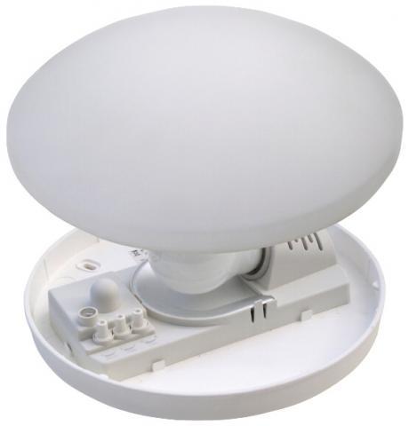Přisazené, venkovní nebo interiérové, stropní nebo nástěnné svítidlo se skleněným kulatým stínítkem. Skleněné opálové stínítko zajišťuje ideální rozptyl světla a zabraňuje oslnění. Svítidlo je osazeno mikrovlnným pohybovým senzorem s 360 stupňovým úhlem detekce pohybu s dosahem až 8 m. Možnosti nastavení: dosah senzorů, doba sepnutí, sepnutí v závislosti na okolním osvětlení. Do svítidla je možnost použít žárovky nebo pouze speciální úsporné zářivky do 14 W určené pro časté spínaní, např. OSRAM DULUX FACILITY.