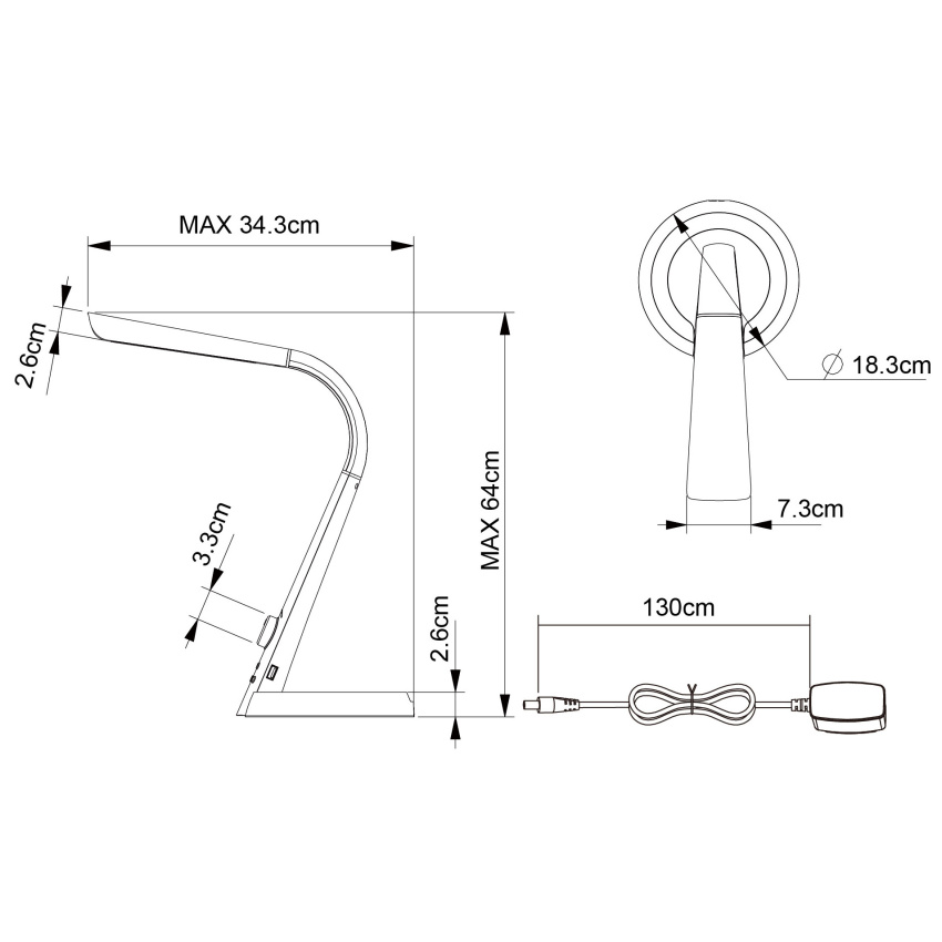 Stolní svítidlo, plast černý, flexi, USB nabíjení, noční světlo s RGB, stmívatelné, měnič barev, fixace barev, dotykový vypínač ON / OFF, DxŠxV: 343x183x640 včetně 1xLED 8W 230V, 450lm, 1XRGB LED 2W 12V, změna barvy světla 3000-4300-6300K