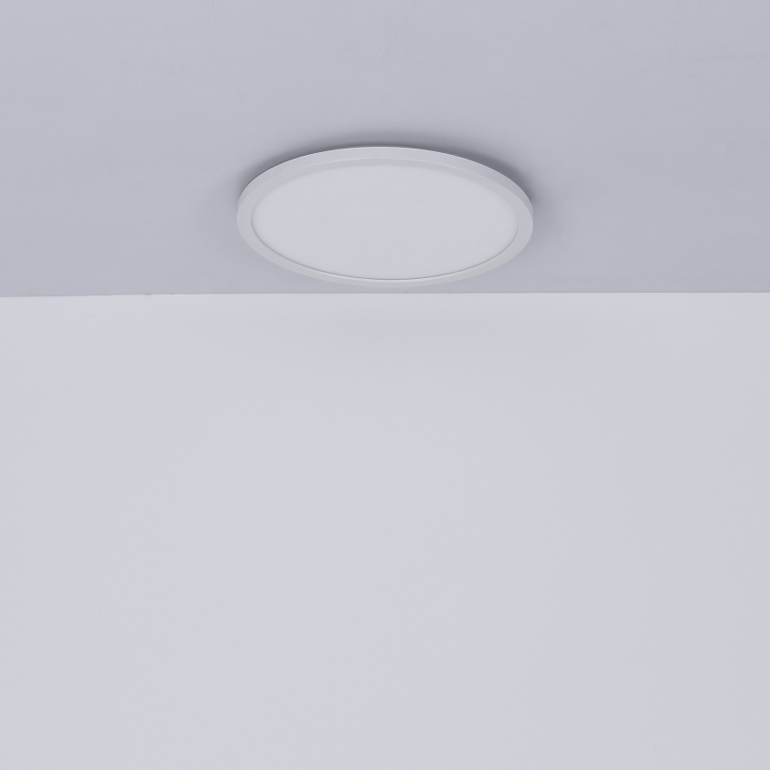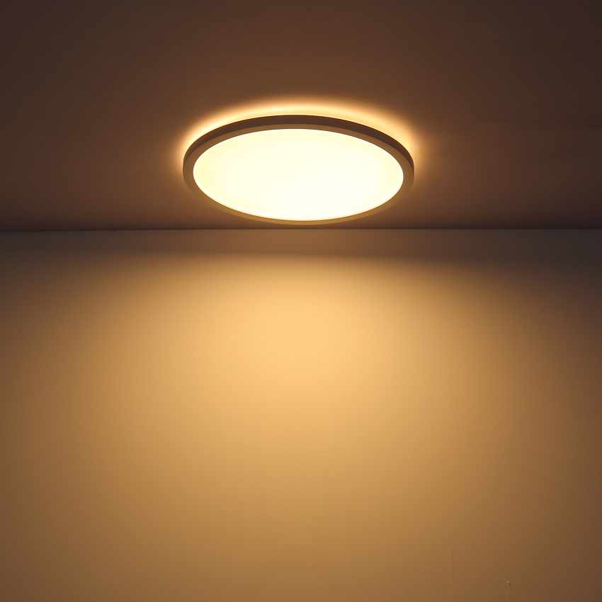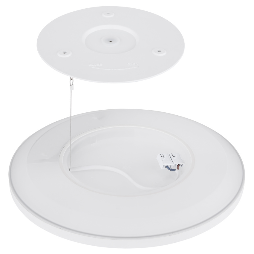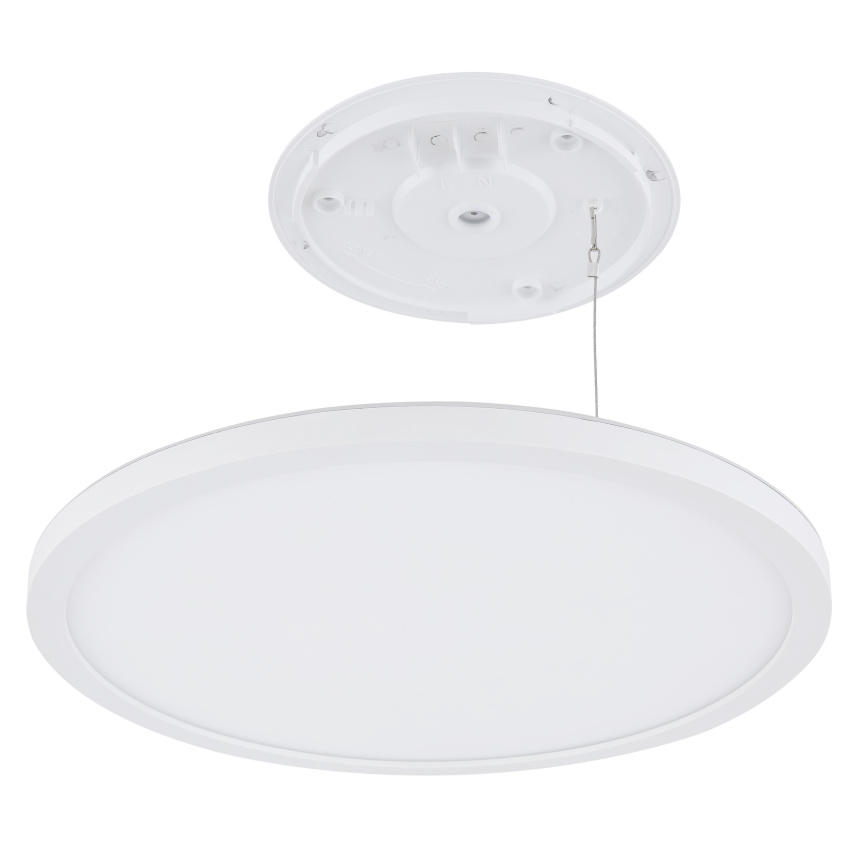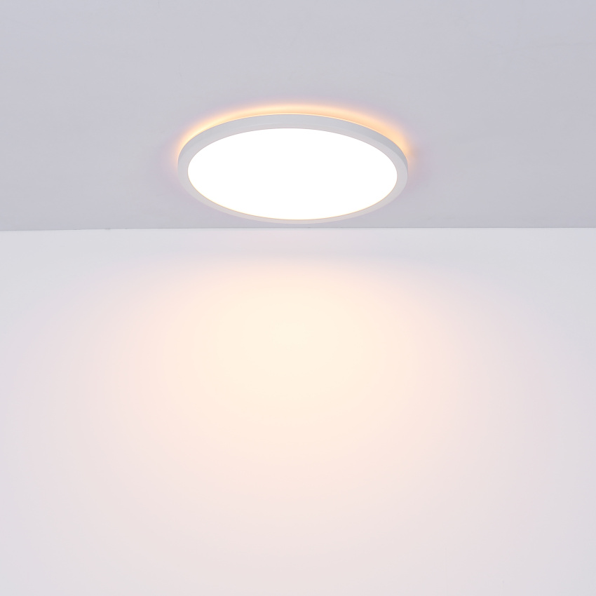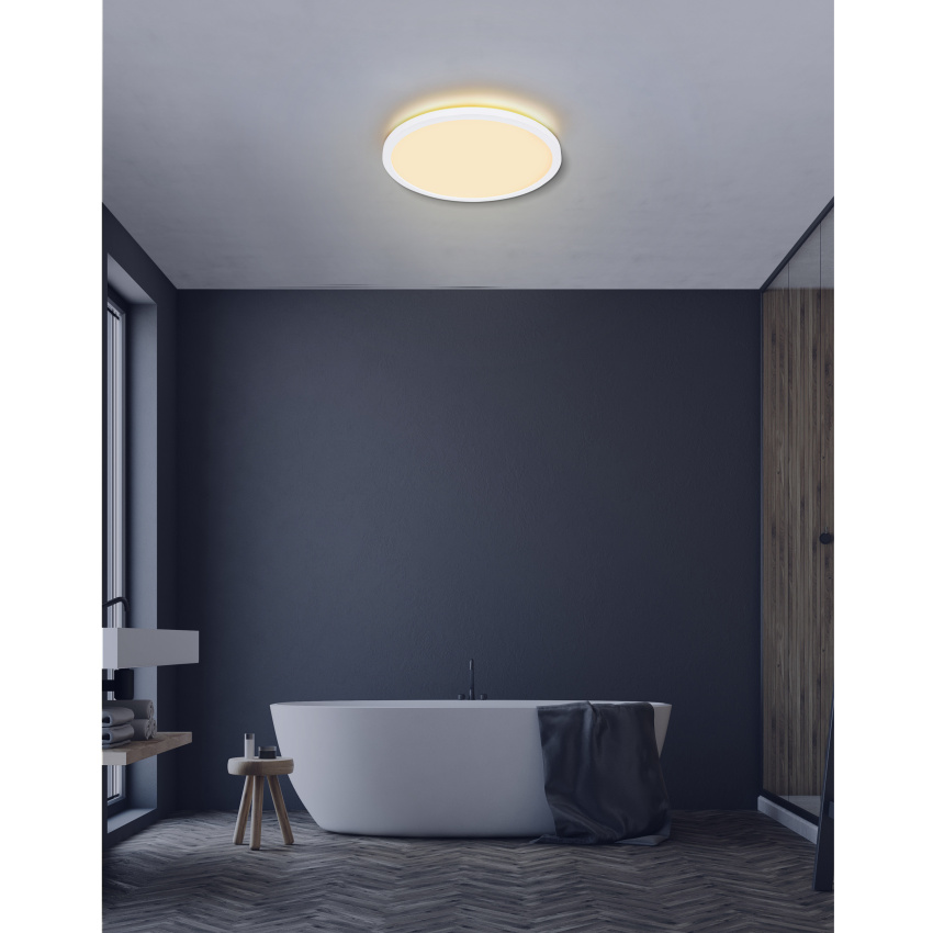 Stropní svítidlo, plast bílý, plast satinovaný, plast opál bílý, podsvícení, 3 úrovně osvětlení pomocí nástěnného vypínače (100-50-10%), paměťová funkce, IP44, ?420, V: 25, včetně 1xLED 24W 230V, 2600lm zdroj, 2400lm výstup, 3000K