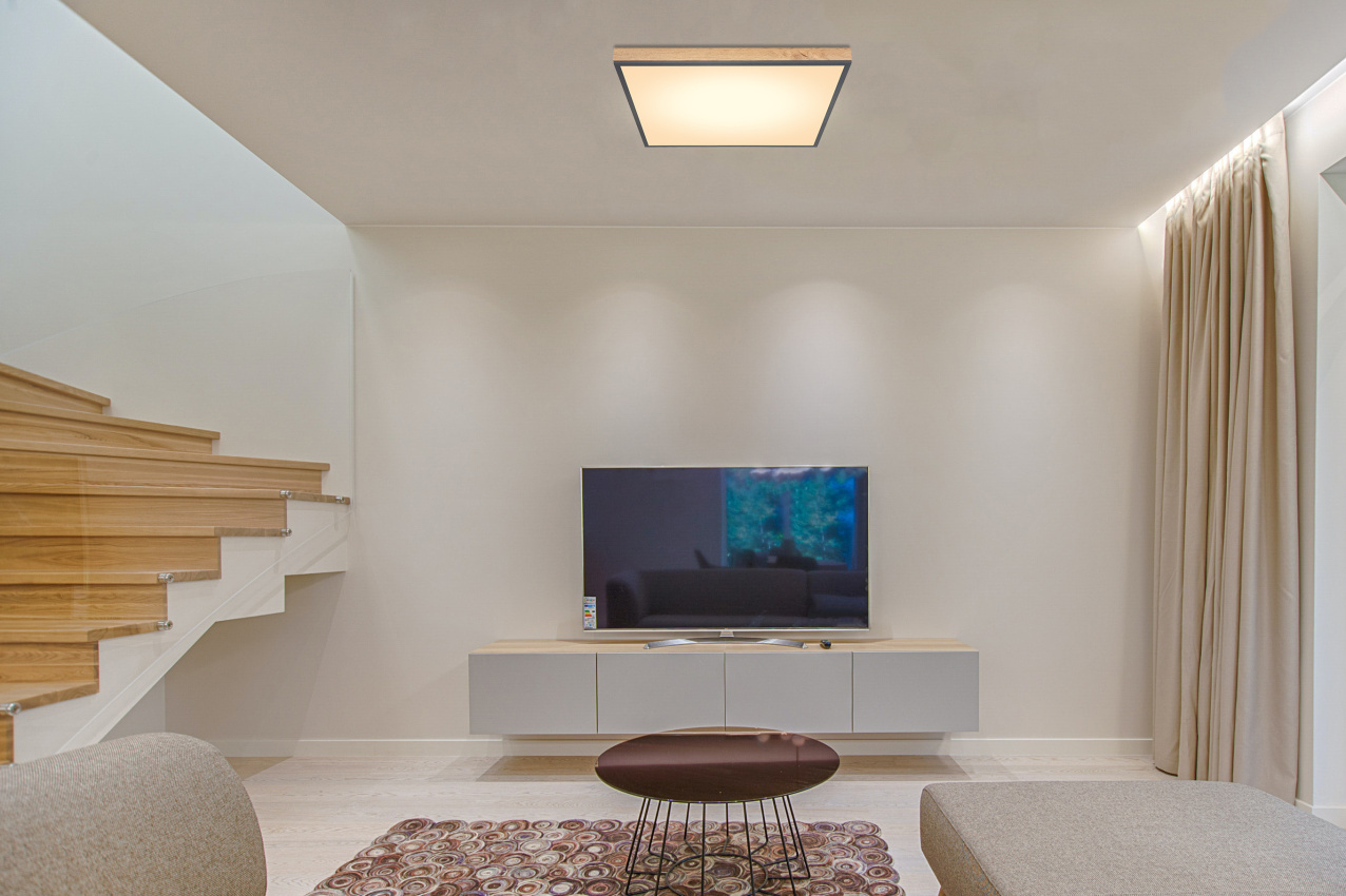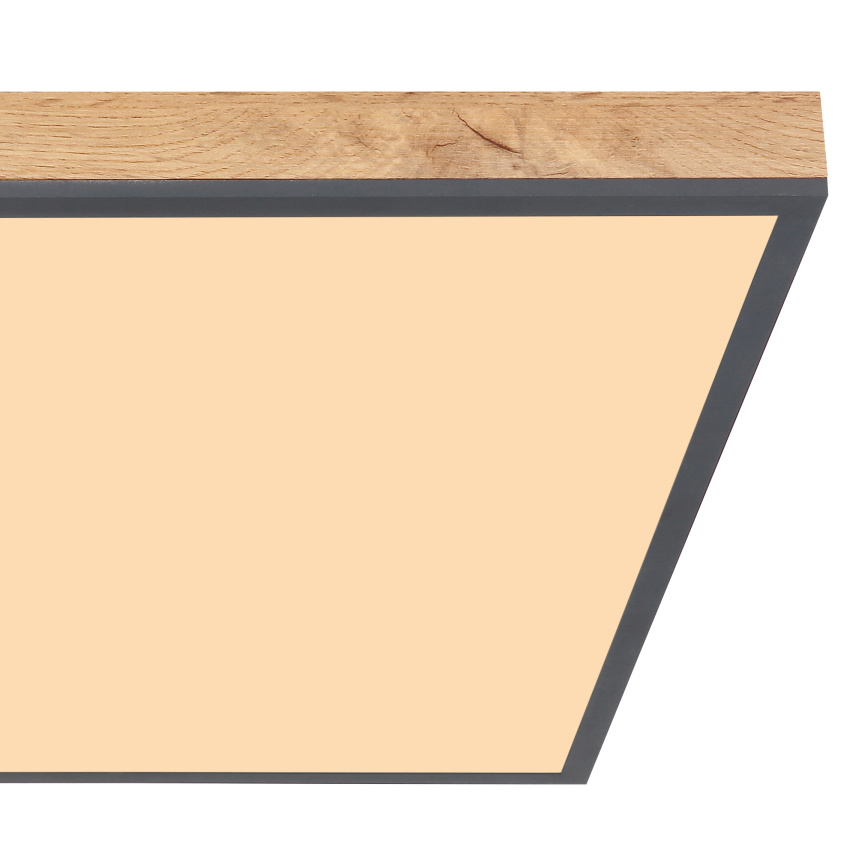 Stropní svítidlo, hliník, grafit, MDF imitace dřeva, akryl opál, rám imitace dubu, DxŠxV:590x590x65, včetně 1xLED 36W 230V, zdroj 3200lm, výstup 2250lm, 3000K
