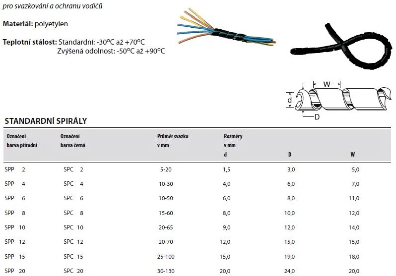Svazkovací spirála se zvýšenou teplotní odolností. Obsah balení 10 m. Teplotní stálost: -50°C až +90°C.