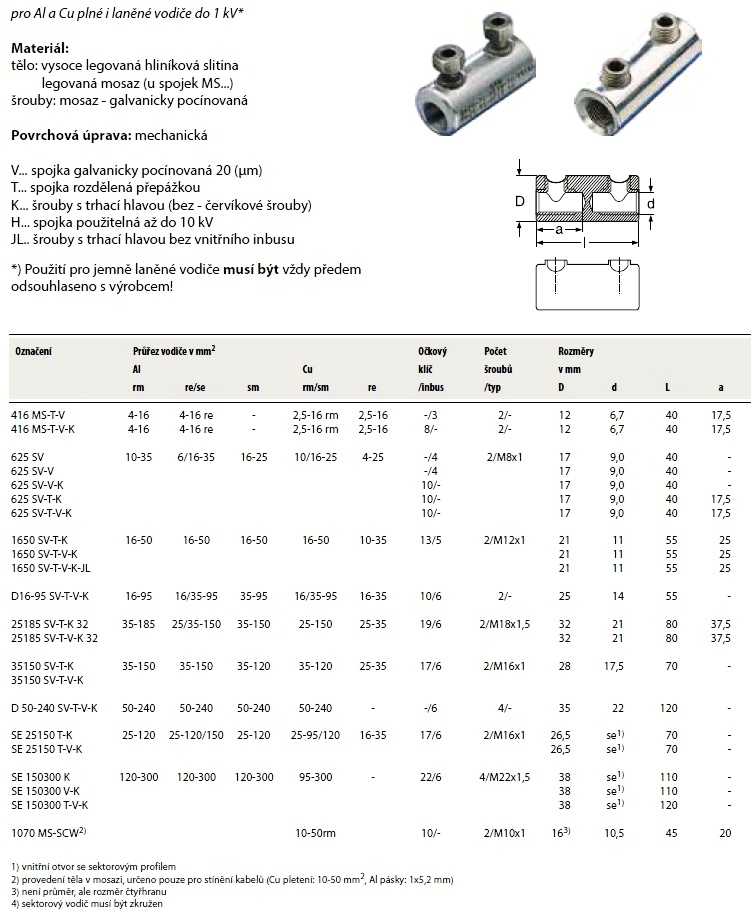 Al šroubová kabelová spojka. Pro Al a Cu plné i laněné vodiče do 1 kVspojka rozdělená přepážkou šrouby s trhací hlavou (bez - červíkové šrouby)