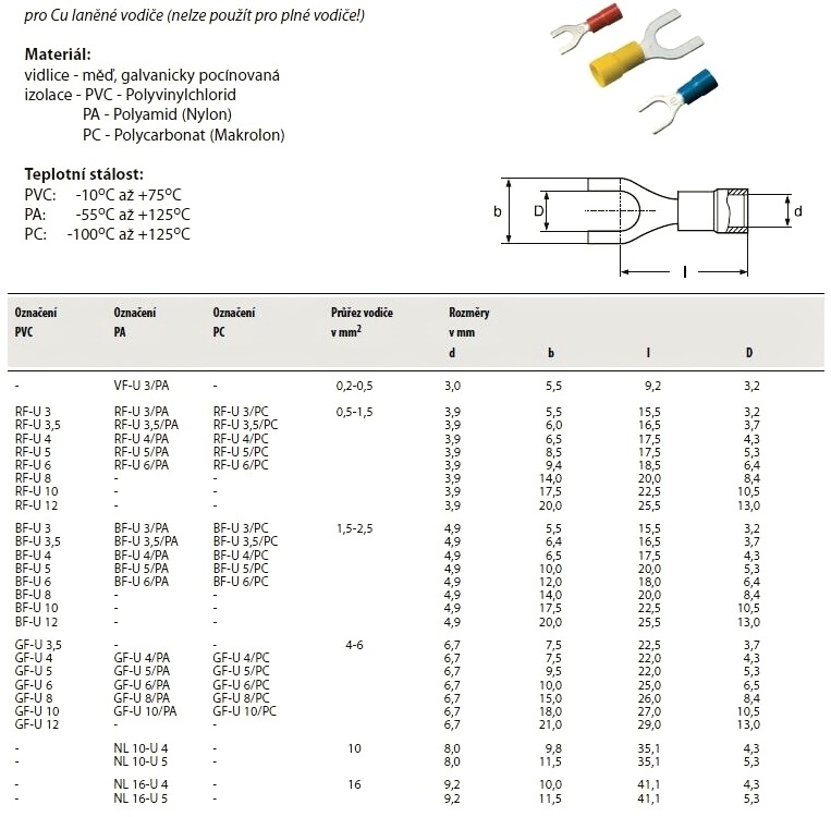Lisovací vidlice s izolací pro Cu laněné vodiče (nelze použít pro plné vodiče).