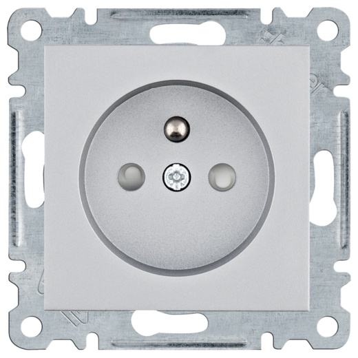 HAGER LUMINA WL1442 ZÁSUVKA SE ZEMNÍCÍM KOLÍKEM A CLONKAMI, BEZŠROUBOVÁ, STŘÍBRNÁ MAT