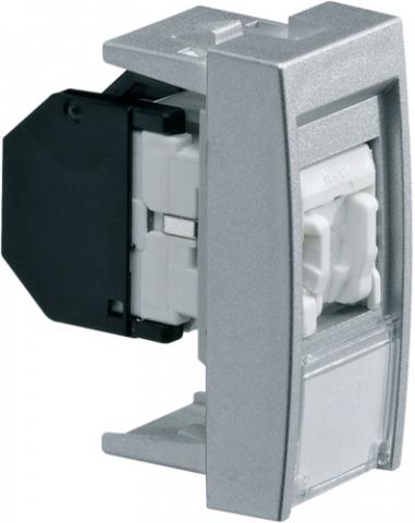 Datová zásuvka Hager WS219T RJ45, 45 × 22,5 mm, Cat 6, titanová, UTP. Včetně popisového pole a krycí klapky, chránící vinutí proti prachu.