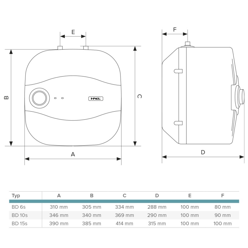 Elektrické ohřívače vody HAKL BDs o objemu 6-15 litrů jsou navrženy pro instalaci pod dřez nebo umyvadlo, přičemž připojovací vývody jsou umístěny nahoře. Dlouhou životnost zajišťuje dvojitá vrstva smaltu BLUE DIAMOND nanesená na ocelové nádobě a anodová tyč, která chrání proti korozi. Tepelná pojistka zabraňuje přehřátí topného tělesa v krizových situacích, zatímco mrazuvzdorná pojistka chrání vodu v ohřívači před zamrznutím.