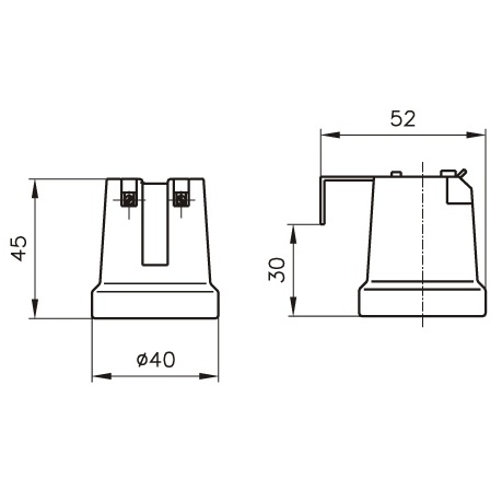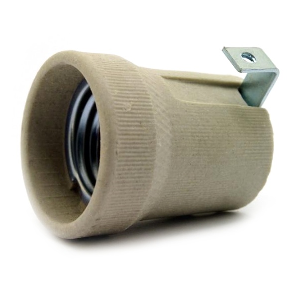 Objímka vestavná. Provedení: keramika, třmen se zemnicím šroubem.