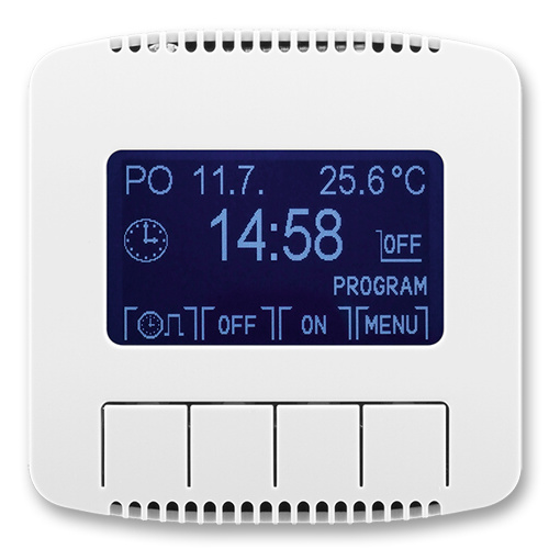 Hodiny spínací programovatelné (ovládací jednotka). Ovládací jednotka (nutno použít spínací přístroj). Provozní režimy: manuální, automatický, automatický astro, časovač, dovolená. 3 časové programy (každý 70 čas. značek – min. po 5 min; dny v týdnu 1, 2 … , 7, 1 - 5, 6 - 7, 1 - 7). Softwarové vypnutí, astrofunkce (zeměpisné souřadnice, časové pásmo, korekce východu a západu slunce), volba reakce na ovládání kontaktem, inverze výstupu, počítadlo provozních hodin, automatický přechod zimní/letní čas, měření prostorové teploty, zámek tlačítek, jas a kontrast displeje, volba jazyka (CZ, EN, RUS). Rezerva chodu: cca 90 dní (dobíjecí Li článek).