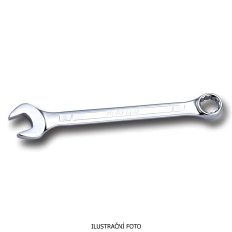 Pevný a odolný klíč z chrom-vanadiové oceli s dvanáctihranným očkem, vyhnutým o 15° pro snazší práci.